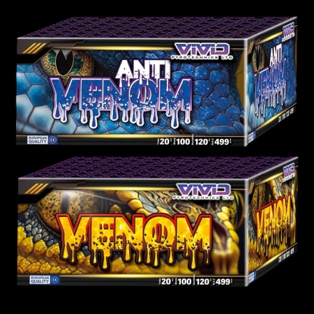 Anti Venom this 100-shot garden firework delivers vibrant colours and impressive effects like flying fish and crackling comets. Perfect for any display, especially low-noise events. Want more excitement? Pair it with the louder Venom for 200 shots of dazzling fun and 4 minutes of action!